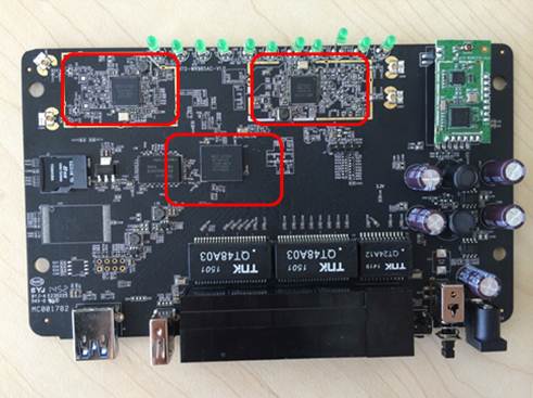 鼎鼎有名的MT7621A,大家可以搜一搜,这颗芯片绝不是路由器那么简单,这里特地替AmazingBOX申明一下:我们不是路由器,而是微服-微型服务器!还有MT7602和MT7612两颗,2.4G和5G WiFi芯片。