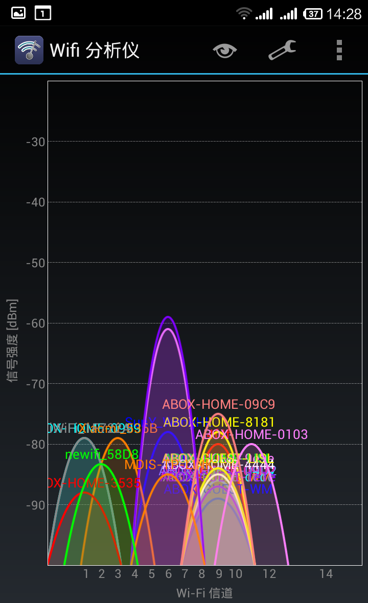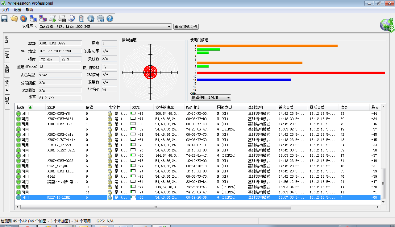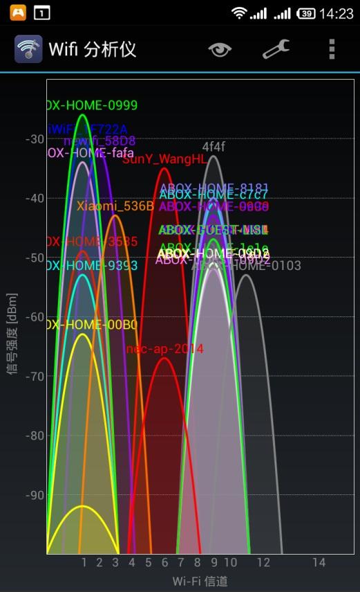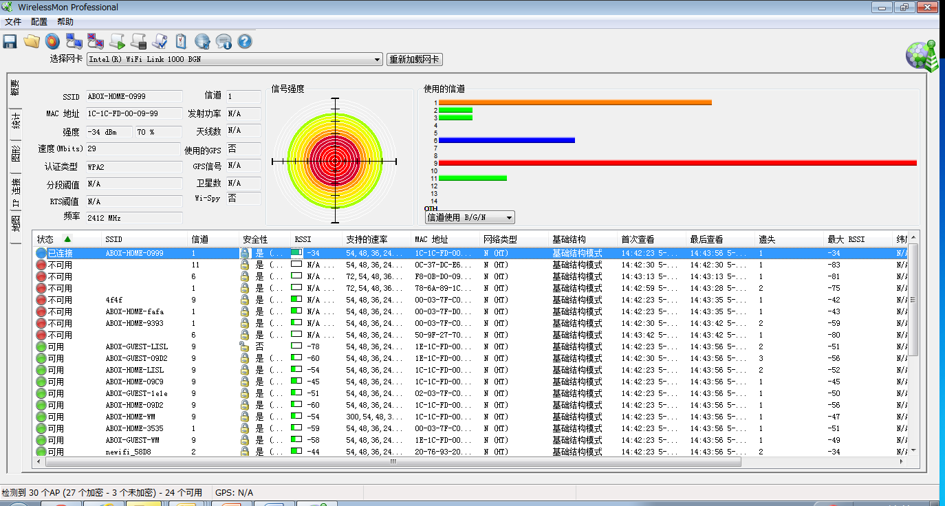 测试环境简介一下,选取的是6F公共场地,信号么, 20多个吧,对于抗干扰能力来说,很考验。