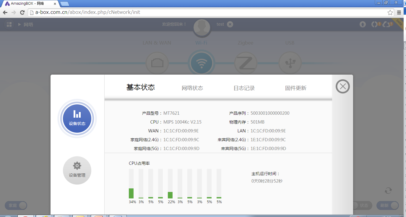 从左到右,有线LAN/WAN,无线WiFi,无线ZigBee,USB等等接口,全部都可自动刷新,状态变换一目了然。