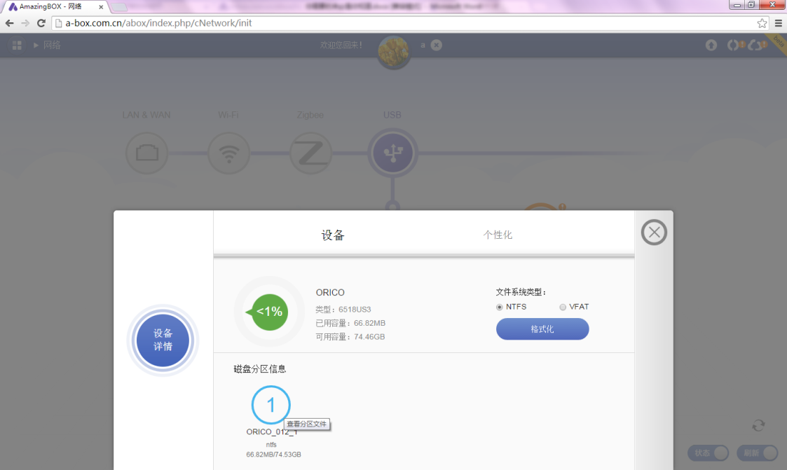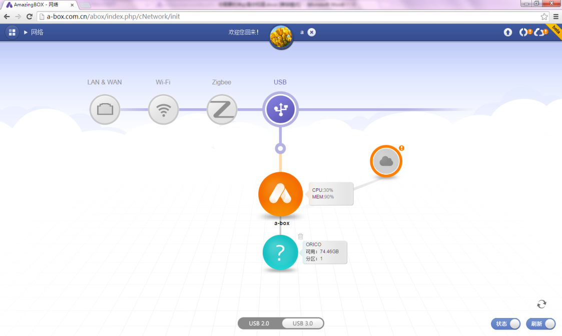 插上一个U盘,看看是如何从DAS到NAS再到云的神奇过程。马上自动刷新,看到变绿了。
