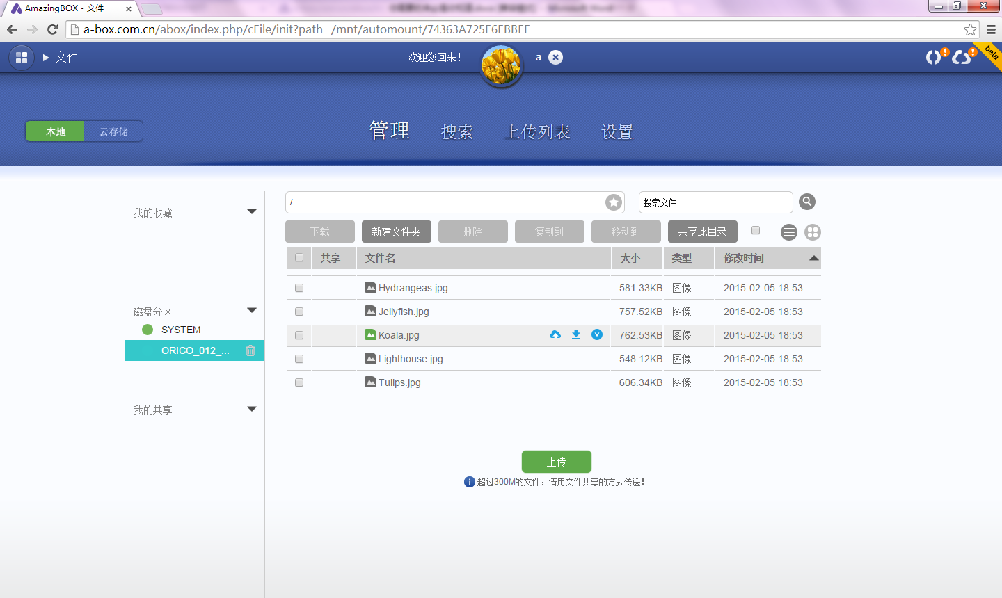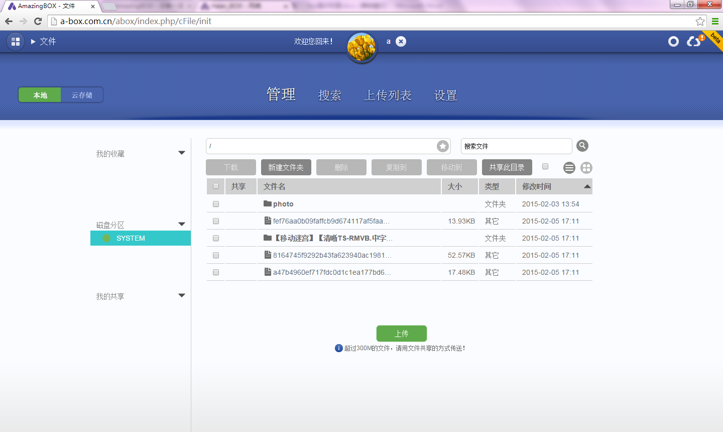 很显然,已经是NAS了,任意一台机器都可以轻松访问,不同的平台都可以。值得称道的是,不需要安装任何客户端了,使用浏览器就可以,暂时支持FireFox、Chrome或者Webkit内核的HTML5浏览器,比如搜狗就可以。
