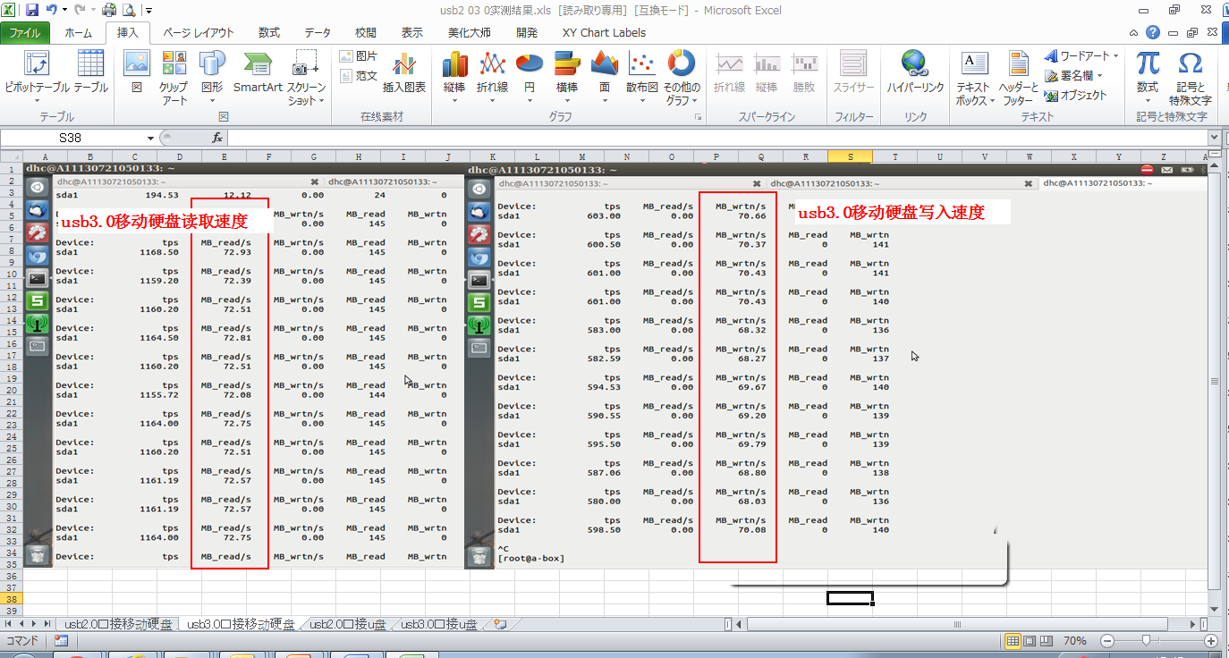 看看AmazingBOX实测的结果吧,果然比USB2.0快不少的样子。USB2.0读写大约35MB的样子,但是USB3.0的读写速度已经达到70MB了,看来还是配置高,任性啊。U盘的测试结果稍微会逊色一些,不过差不了多少。