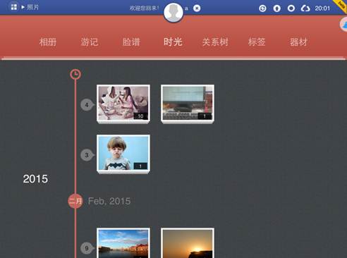 同步完成以后,神奇的一幕发生了,自动同步到AmazingBOX上的照片被自动分组,可以是时间,也可以是拍摄设备,还可以是脸谱。