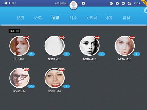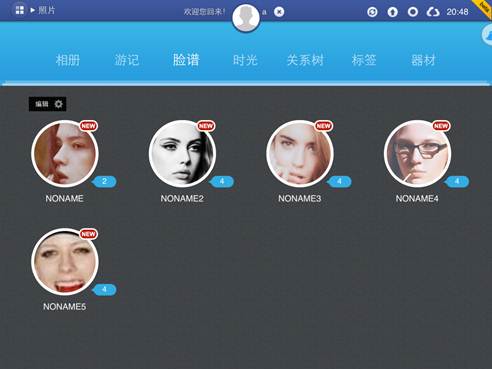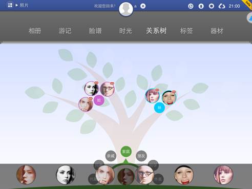 识别出来的人可以按照社会关系来管理,以后,拍了谁的照片,到这个界面上一看,就知道了。其实别人都可以不关心,自己的家人有了新照片,可得第一时间看看哦。这一点希望将来可以增加自动提醒功能。